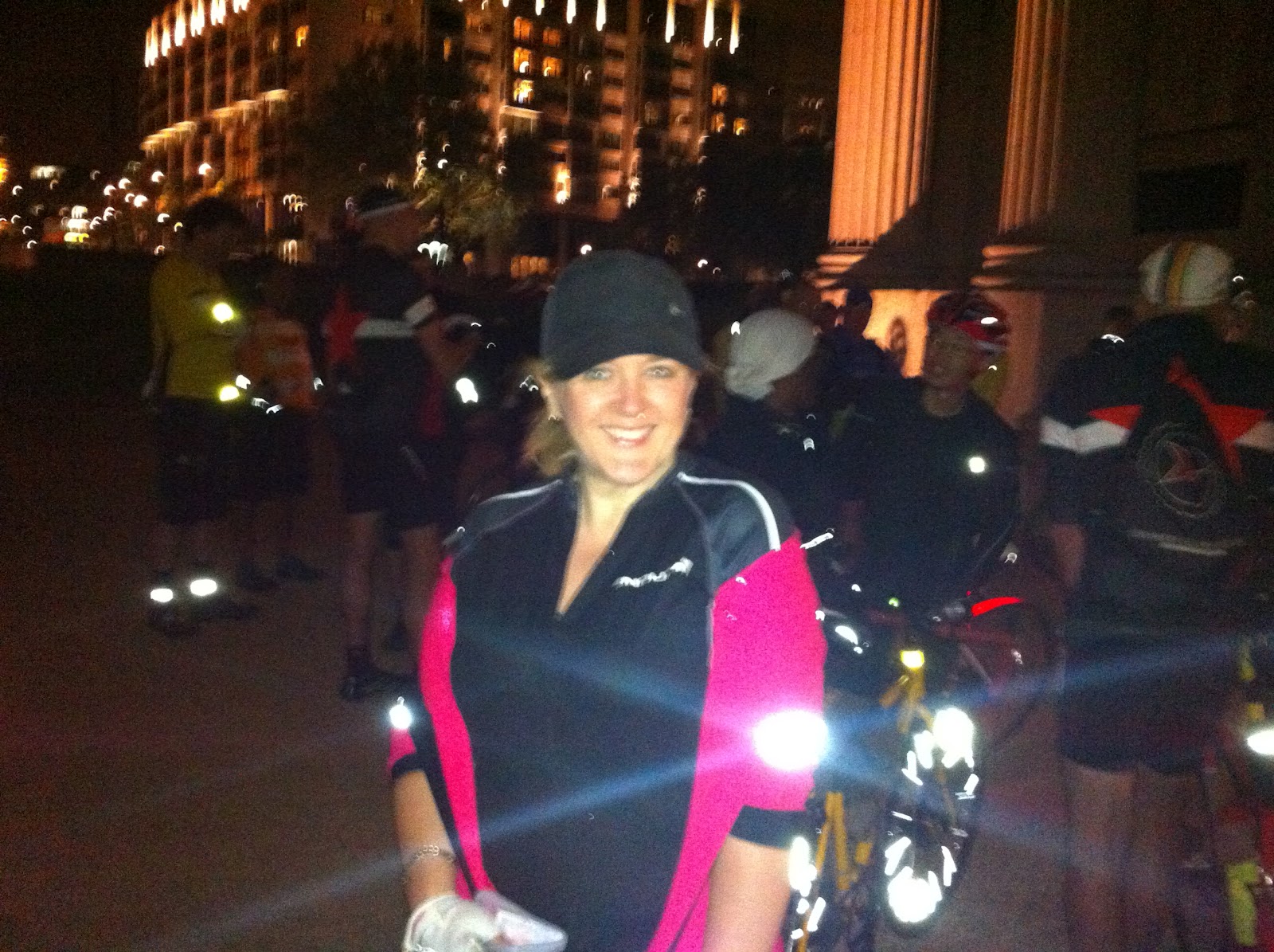We met 'Big E' along the A21 at around 10 o'clock last night (Friday) and we set off towards London. I was a bit apprehensive about todays ride, the people that go on these rides are, well what can I say? You know they call people who totally love fast cars 'Petrol Heads' well these guys are 'Ped Heads' (they love their peddles) They love riding, they love their bikes and they love all the 'bling' that goes with it. Well I can understand about the bling, as I am slowly building up my stock pile of cycling gear! but to be truthful I know nothing about bikes, and the frames, and gears, brakes and de-railers! A 'Boardman' bike, to me looks like a 'Specialized' (I know I am going to get such a comeback on that statement) I mean, I bought my bike because it was white, and it had a name 'Escape' on it, (an idea I liked) and it was tons lighter than my old bike!